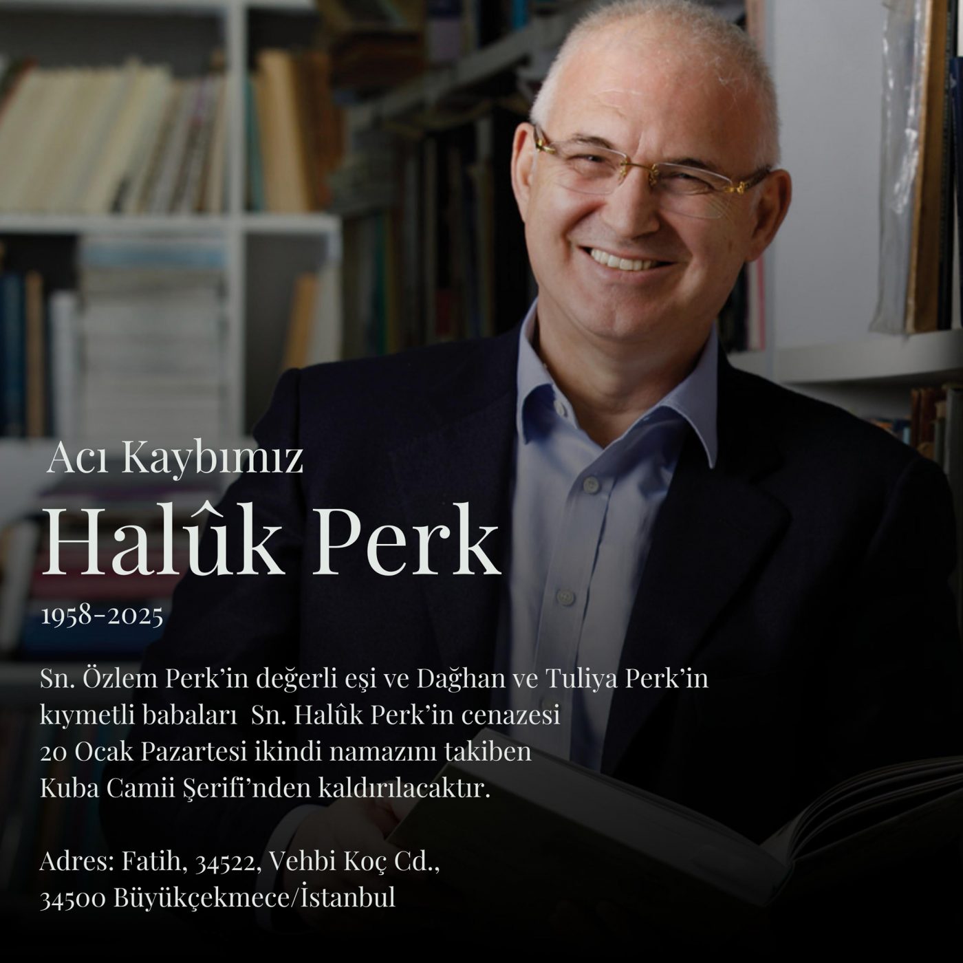 Sn. Özlem Perk’in değerli eşi ve Dağhan ile Tuliya Perk’in kıymetli babaları Sn. Haluk Perk’in cenazesi 20 Ocak Pazartesi ikindi namazını takiben KUBA Camii Şerifi’nden kaldırılacaktır.